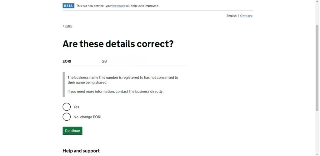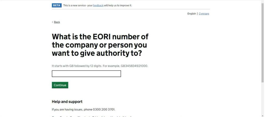 Once you have clicked on the link, you will need to enter the Bermuda Forwarders (UK) EORI number: GB174113138000