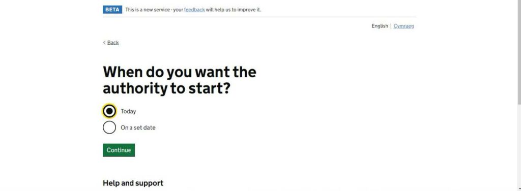 Please then follow the prompt, going forward until the end. At the last screen, click on the authority starting “Today” then click on “Continue”.